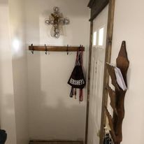 My entry way was a fun green that made me smile when I walked through the door. It took me many years to get to the point of wanting a change. The change was brought on because I was drawn more to county farm house look and the simplicity that it gave.
